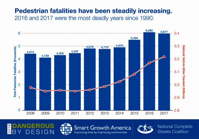根據研究,致命的行人車禍,最多發生在低收入社區,受害者主為有色人種和老年人。儘管新車款已增配更安全的設備,但數據顯示,在過去十年中,行人受傷增加了35%,而2016年和2017年是自1990年以來最致命的年分。