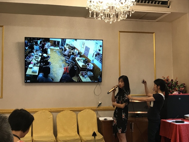 美國亞裔社團聯合總會12日召開發布會,現場播放美甲店暴力事件視頻。(記者和釗宇/攝影)