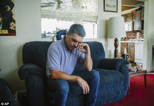 今年47歲的米茲克14日觀看電視記者會時難忍淚水,他稱12歲在唱詩班時,於費城教堂遭到神職人員性侵。(美聯社)