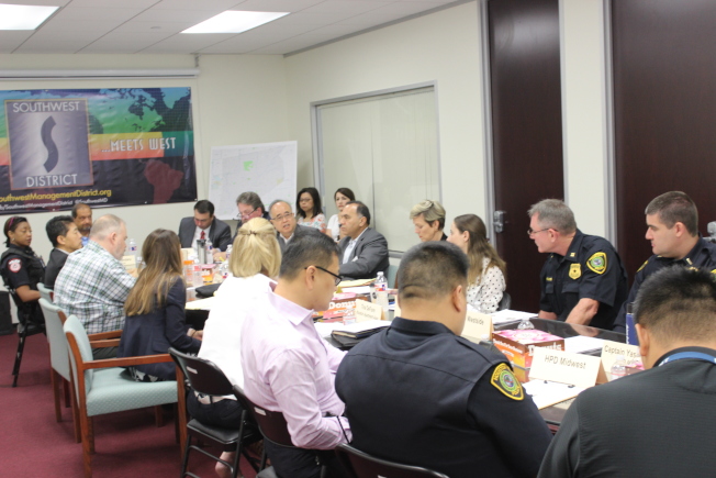 休士頓西南管理區8日上午召開治安會報,由於近日來有許多治安案件發生,格外引發華人關注。8日除地區檢察官辦公室、警察局、保全等治安單位代表參加外,也有不少華人全程參與,大家聆聽相關單位的會報後對治安狀況有更多了解。