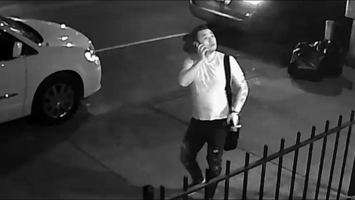 根據警方公布的視頻,這名亞裔嫌犯作案前,身穿淺色上衣和牛仔褲,曾給他人打電話,並在屋外抽煙,約30歲左右,5呎8吋,中等身材;左手臂有紋身,並攜帶一個斜挎包。
