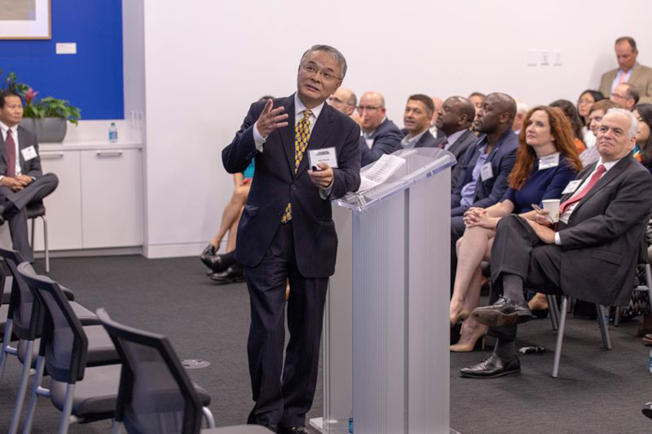 田德友以「中國是美國的機會還是威脅」為題發言,強調中美雙方應該相互尊重對方的歷史、文化和體制,同時在貿易和投資方面共同遵守世界貿易組織(WTO)和相關國際商務法等遊戲規則,維護公平競爭和創造友好合作氛圍。