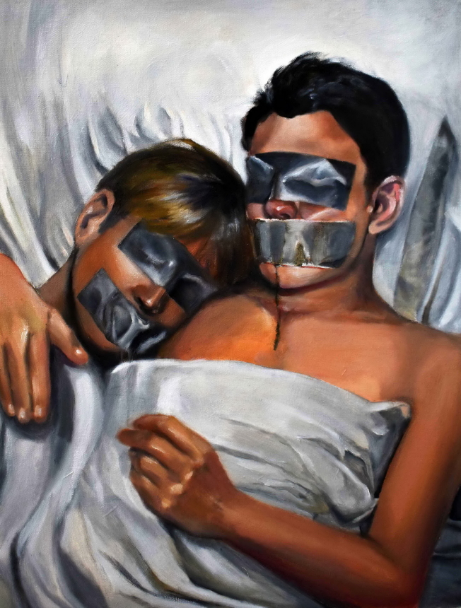 17歲的吳文煒(Laura Wu)的油畫作品「情侶」(The Lovers)獲2018年全美初高中藝術及寫作大賽全國金鑰匙獎。(范新林提供)