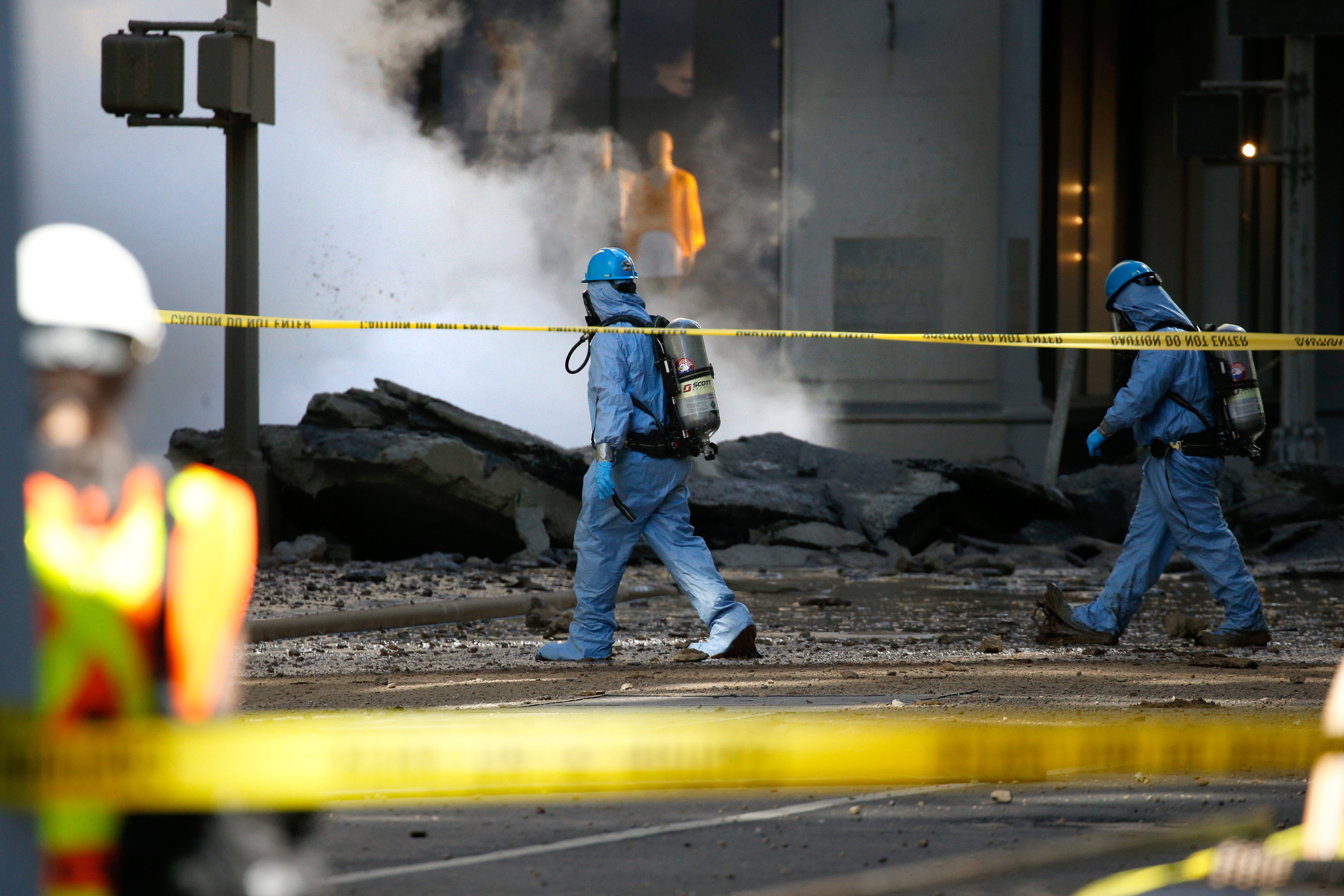 市長白思豪(Bill de Blasio)19日下午到現場時說,清晨6時39分,位於5大道交21街處地下一條20吋口徑的蒸氣管道因破裂引發爆炸;經消防局、聯合愛迪生電力公司和市環保局確認,爆炸導致石棉洩漏,不過經幾個小時後,受爆炸影響的周邊多個街區空氣是安全的,石棉含量不到影響人體健康的臨界點。