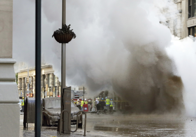 紐約市曼哈頓地標性建築「熨斗大廈」附近19日清晨發生老舊蒸氣管爆炸,路面被炸出大洞;蒸汽噴湧高達70呎,一時附近濃煙瀰漫,並導致有毒石棉洩漏,周邊49棟大樓疏散,預計二天後,才能恢復正常運作。