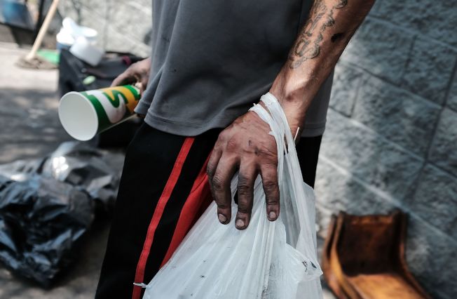 一名男士在紐約布朗士街上乞討。(Getty Images)