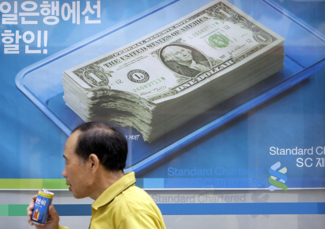 美國貿易戰的下一個戰場可能是匯率,圖為韓國首爾的匯率兌換廣告。(美聯社)