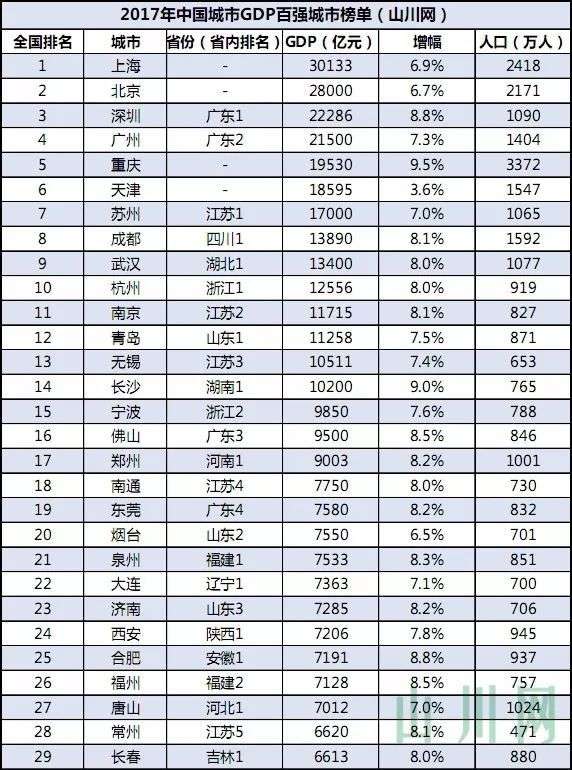 2017年,中国城市GDP百强榜出炉,万亿GDP城市14座!