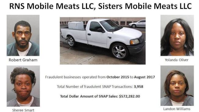 州檢察長潘.龐迪 (Pam Bondi)辦公室指出,從2017年2月到7月的六個月期間,臥底警探進行390宗交易,見到130多人。龐迪指控這些人利用旨在幫助有需要者的糧食券計畫飽其私囊,是「可恥」的行為。