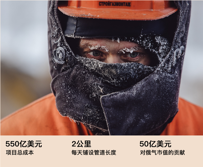 对负责该管道建设、由克里姆林宫控制且垄断天然气出口的俄气而言,这项巨型工程是其历史上规模最大、成本最高的项目。当2019年12月管道阀门打开时,全球最大的天然气出口国将首次与全球最大的能源进口国相连。