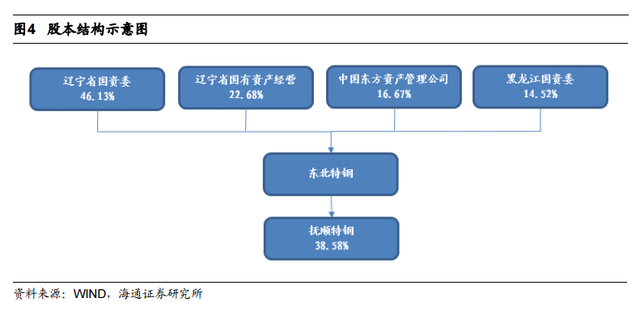 东北特钢东北特钢第一大股东和实际控制人均为辽宁省国资委,处于绝对控股地位。其余股东为辽宁国有资产经营公司、黑龙江省国资委以及东方资产管理公司。公司受辽宁省国资委的直接管理,是北方最大的特钢企业,也是国内三大特钢集团之一。