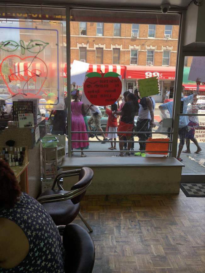 6日上午,美甲店外聚集大量非洲裔示威者。(讀者提供)