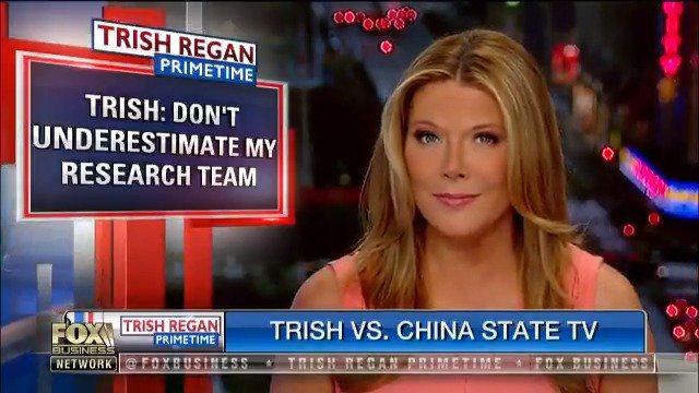 Hey #China State TV - let’s have an HONEST debate on #trade. You accuse me of being ‘emotional’ and not knowing my facts - wrong! You name the time and place, and I’ll be there! #TrishRegan