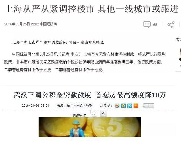 2016年3月25日,上海、深圳两地相差12小时,先后推出了楼市新政,试图为楼市价格猛涨踩下刹车。武汉、南京的调控政策也在同一天出台。