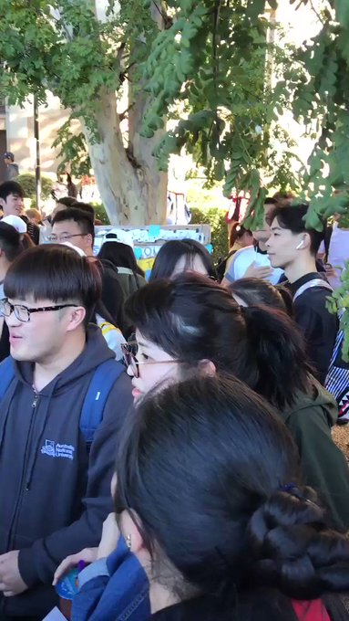 然而不久之后,香港与澳洲学生被数百名中国学生包围,而这些中国学生开始高喊“香港是中国的一部份”,并用扩音器播放中国国歌且跟着唱。 推特上的视频显示,中国学生动手抢走香港与澳洲学生手上的标语,甚至有人将标语撕毁,而双方也逐渐出现零星的推挤。 在昆士兰大学学生社团报担任记者的琼斯 (Nilsson Jones) 告诉德国之声,当他听到原本平静的集会传出中国国歌与群众拍手欢呼的声音时,他便前去一探究竟。