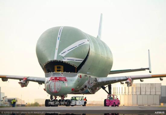 超级大白鲸是现役容积最大的飞机之一,机身前上部突出,拥有巨大的货舱空间,让人很难辨认出它是由空客A330-200飞机衍生设计的超大型运输机。