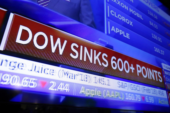 道瓊指數24日狂洩600多點,重演今年2月的局面。(美聯社)