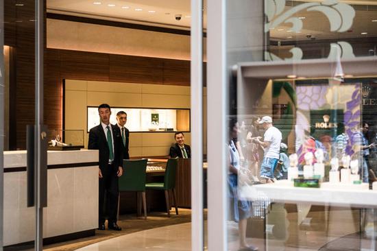 资料图:香港铜锣湾的劳力士专卖店在等待顾客。