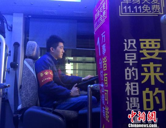中新网南京11月11日电 (盛捷)“要来的挡不住”“单身汪求解放”“不约,我想静静”,?一年一度的“双11”来了,从最初光棍自嘲的娱乐性造节,今已成为大众皆知的“光棍节”,11月11日,南京11辆11路公交车变身“脱单公交”,还贴上了醒目的脱单口号,免费给乘客搭乘,无独有偶,其中几位司机也是单身。