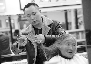 今年73岁的蒋凤英说,“以前我从来舍不得进理发店,自己剪或是老伴帮忙剪,现在我每月都来天鹰,刘老板手艺好,人也热情,我们都喜欢找他理发。”