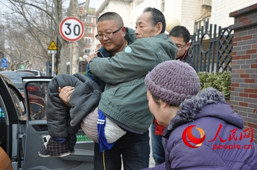 人民网南通2月5日电(记者王继亮)2月5日下午2点50分,人民网新春走基层记者赶到江苏南通崇川区虹桥新村卢桂富老人家中时,的哥蔡庆明正在帮老人穿衣服。老人患有脑梗与尿毒症,从2012年开始,蔡庆明就义务承担起送他去医院的差事了,现在已是第五个年头。