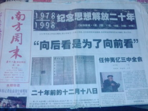 1998年, 中国“改革开放”二十周年纪念,我在《南方周末》接到的任务,是写一篇在头版发表的纪念文章。我交出了一篇看上去有些奇怪的文字,也就是发表于当期头版社论位置的《二十年前的十二月十八日》。我试图通过日常生活描述出当时的民众对于变革的渴望,以及黑幕政治下个体命运的无助。