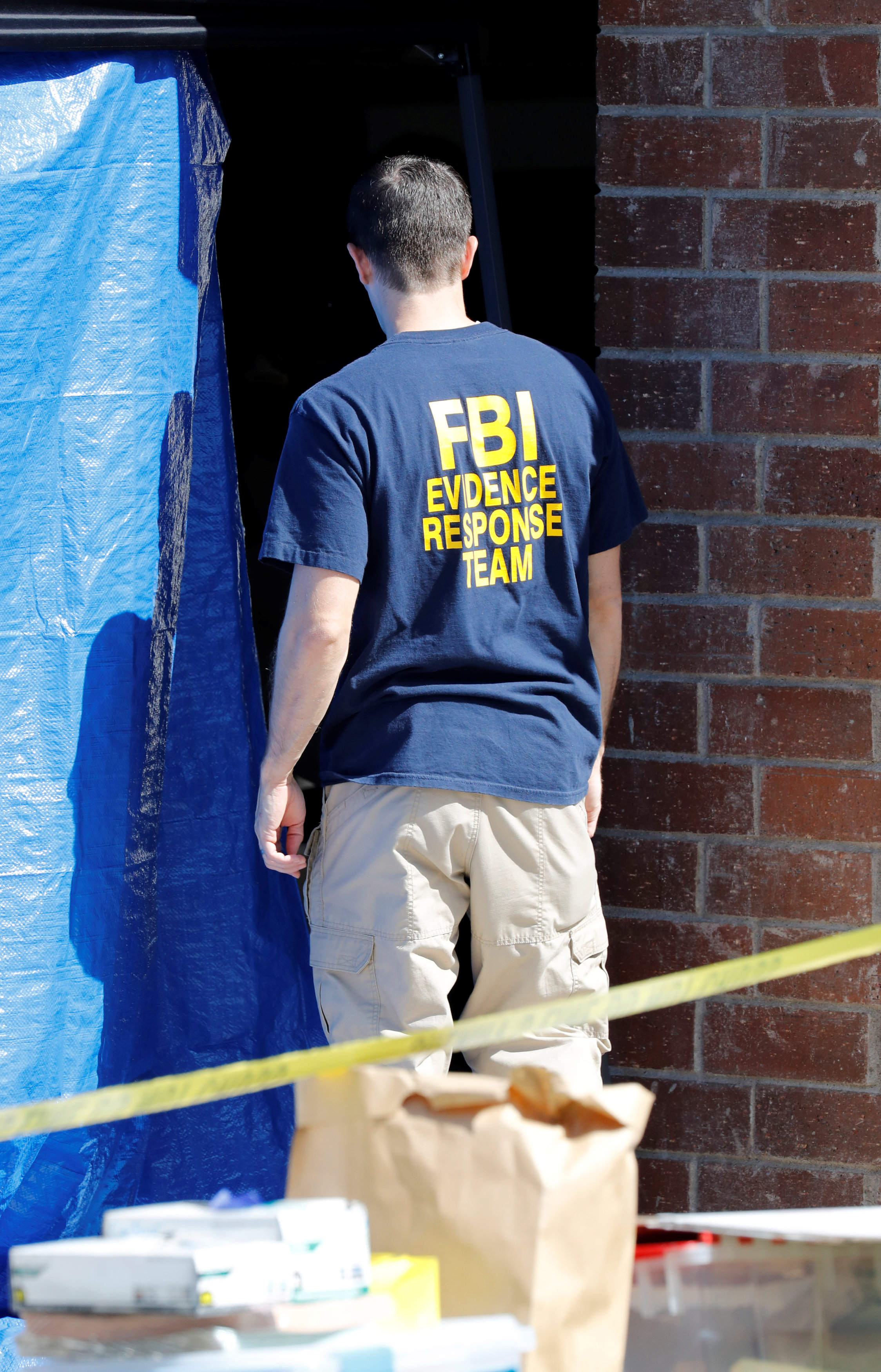 執法人員封鎖嫌犯狄安吉洛住處,徹底搜索。(路透)
