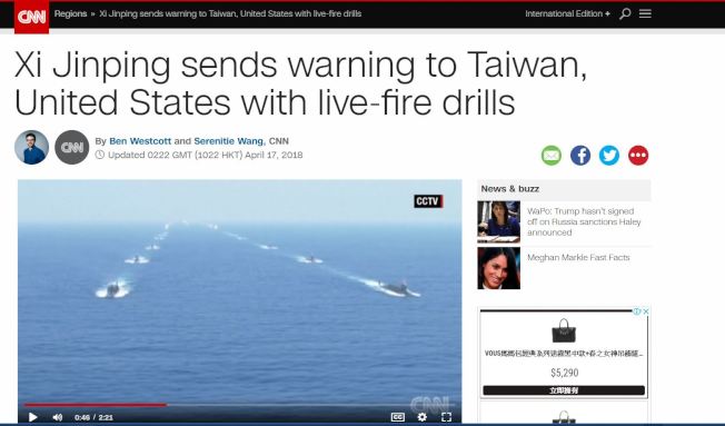 CNN專文報導,解放軍18日進行的軍事演習,是2015年9月以來海軍首次的實彈演習,認為這是中國國家主席習近平在美國川普政府與蔡英文政府尋求緊密關係之際,對台、美發送的一個「清楚訊息」。