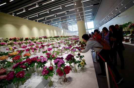 通过“序厅”到达国际馆A馆一层。一进展馆就是具有中国特色的“国花门”。这里种植着各类牡丹,同时举行牡丹景观竞赛。来自西北的高原牡丹、中国栽种的江南牡丹,绽放在具有种植地特点的布景中。
