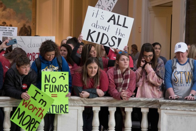奧克拉荷馬州的師生一齊到州議會施壓。(Getty Images)