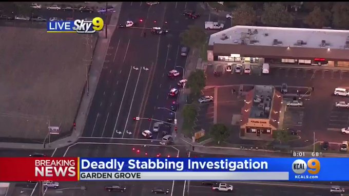 #Breaking- Another stabbing Garden Grove. Chevron station. Victim bleeding. This follows a stabbing death today and one last night Police on scene @cbsla #cbsla.