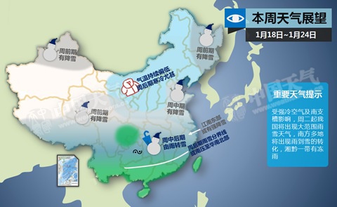 中国天气网讯 目前,西伯利亚正有一股霸王级的寒潮蓄势待发,将在本周影响我国大部地区。受其影响,南方将出现大范围雨雪,其中贵州、湖南有冻雨,浙江中北部局地有大暴雪;同时强冷空气将给中东部大部地区带来6-8℃的降温,局地降幅达10-14℃,安徽南部和浙江中部等地最低气温可能逼近1月历史极值。24日春运即将开始,公众需注意防范雨雪降温天气对出行带来的不利影响。