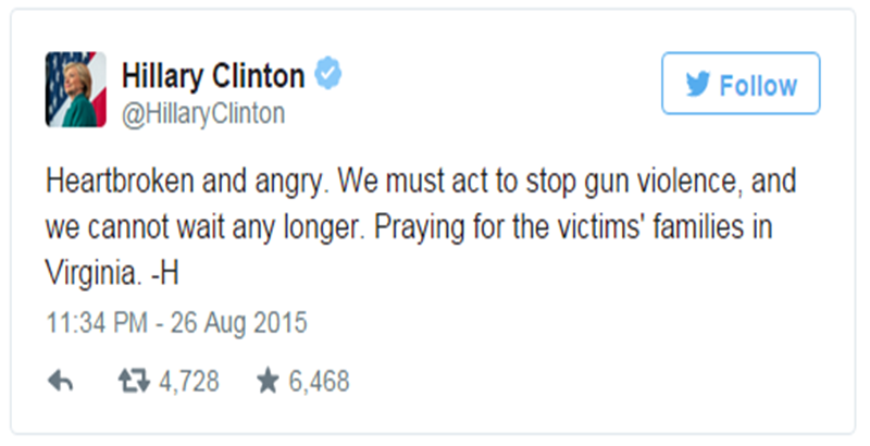 在弗吉尼亚枪击案发生后,奥巴马表示,这一事件让他感到再次“心碎”。“每一次类似事件发生时,我都会感到心碎。这件事也敦促我们再次思考,应该如何减少枪支暴力悲剧”。