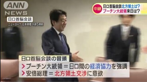 【环球时报综合报道】日首相安倍晋三与俄罗斯总统普京28日在纽约联合国总部举行会谈。对于这次会谈,日本聚焦在北方四岛(俄称南千岛群岛)的领土问题,而俄方更想谈经济合作。