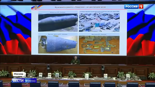 俄卫星网4月25日称,俄罗斯总参谋部向记者展示了英法美联军向叙利亚发射的巡航导弹的部件,包括美军空袭叙利亚所使用的海基战斧式巡航导弹、法国空军Scalp-EG空射巡航导弹的实物(部件),还有要英国空军“风暴阴影”巡航导弹的部件。现场还展示了发动机部件和导航系统元器件。