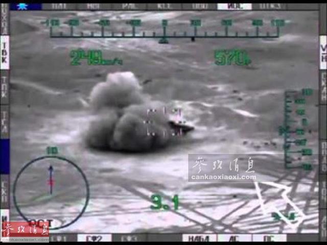 资料图:俄罗斯国防部3月31日公布的俄军米-28N在叙利亚巴尔米拉,使用反坦克导弹摧毁敌军装甲车
