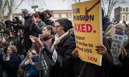 英国大学联盟提出将养老金计划从目前的固定收益模式改为分配模式,即把原本每月按固定比例发放给教师的退休金投入股市交易,所获利润用于未来养老金分配。但是英国大学教师工会声称,这会造成每位教职员工每年高达1万镑的损失。