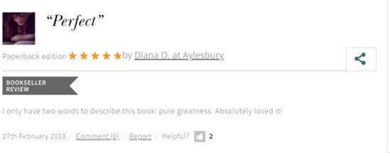 “读完此书,我只有三个字来形容,那就是——太棒了(pure greatness)。我简直太喜欢了”,Diana O表示。