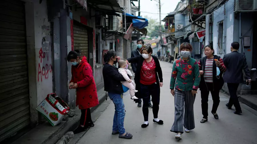 Residents wearing face masks walk at an old residential community blocked by barriers in Wuhan, Hubei province, the epicentre of China's coronavirus disease (COVID-19) outbreak, April 5, 2020. REUTERS - ALY SONG