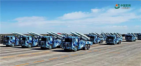 受阅的反舰导弹主要担负打击敌大中型水面舰艇及编队任务,具备速度快、威力大、射程远等特点,瞬间可击毁大中型舰艇,是夺控制海权的重要装备。