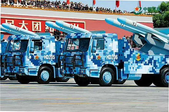 鹰击-83K空舰导弹和鹰击-62A岸舰导弹,突防能力强、打击范围广、毁伤威力大,是海军反舰慑敌的中坚力量。