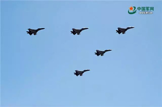 歼击机梯队中的5架歼-16。王传顺 摄