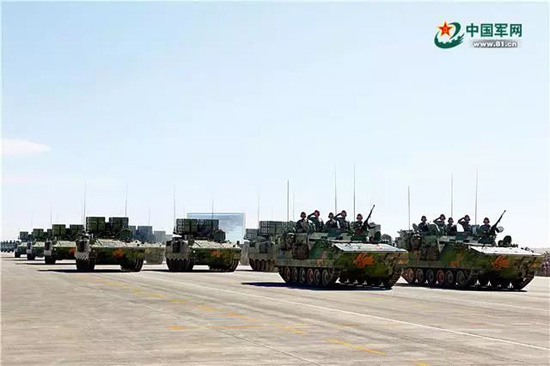 在胜利日阅兵中首次亮相的04A履带步兵战车,是我军目前机动性最强的步兵战车。冯凯旋 摄