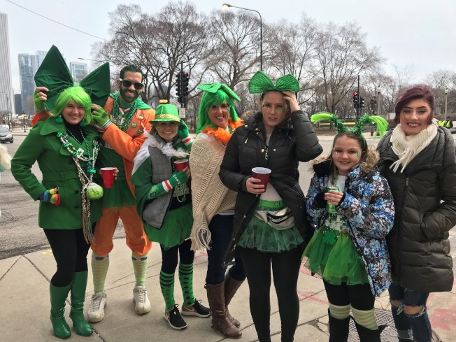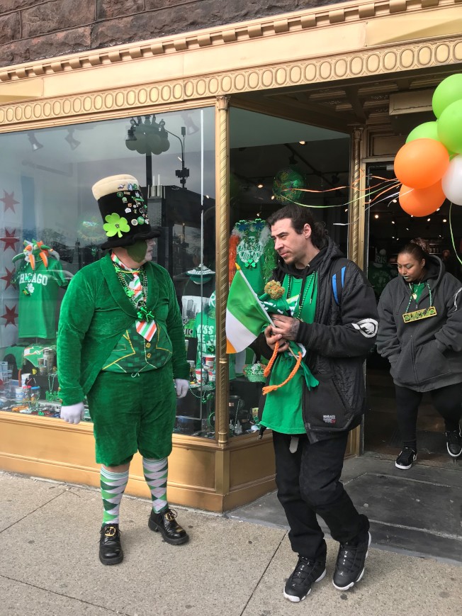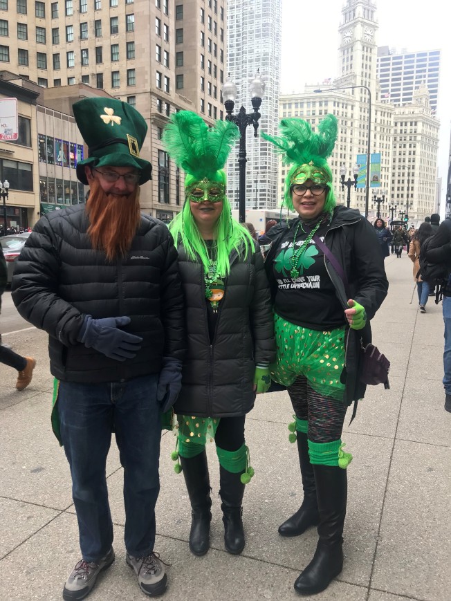 17日到芝加哥市區的民眾,幾乎人人「綠色」上身共襄盛舉。(特派員黃惠玲/攝影)