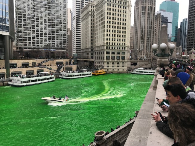 一年一度的芝加哥聖派翠克節(Saint Patricks Day)「染綠芝加哥河」活動,17日上午9時在芝加哥市區北密西根大道兩側河道登場,不到一小時間,芝加哥河水在數萬民眾眼前,全部神奇轉為綠色。