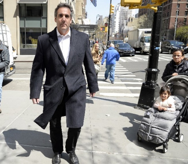 FBI搜查了川普總統私人律師柯恩的辦公室、旅館和住家,圖為柯恩11日上午離開在紐約市曼哈頓的住所。(TNS)