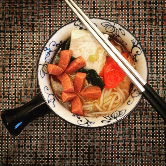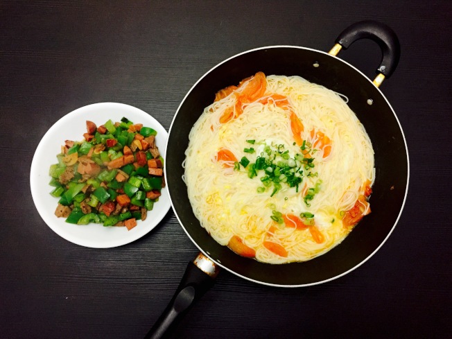 胡Renee自製番茄雞蛋麵。(記者董宇/攝影)