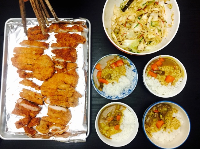 胡Renee自製日本咖喱雞排招待朋友。(記者董宇/攝影)