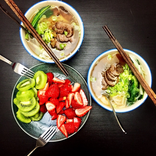 胡Renee自製牛肉湯麵。(記者董宇/攝影)